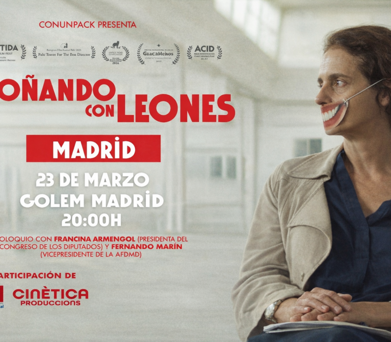 La productora Cinètica Produccions, la distribuidora Con Un Pack y la asociación Derecho a Morir Dignamente (DMD) presentan el estreno en Madrid de Soñando con leones, la aclamada coproducción luso-brasileña-española dirigida por Paolo Marinou-Blanco, que tendrá lugar el próximo 23